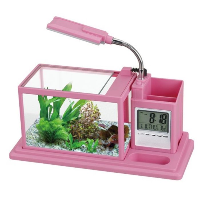 Этот резервуар вмещает два галлона воды. И не забывайте всегда проверять качество воды! Это один из лучших вариантов офисного аквариума!