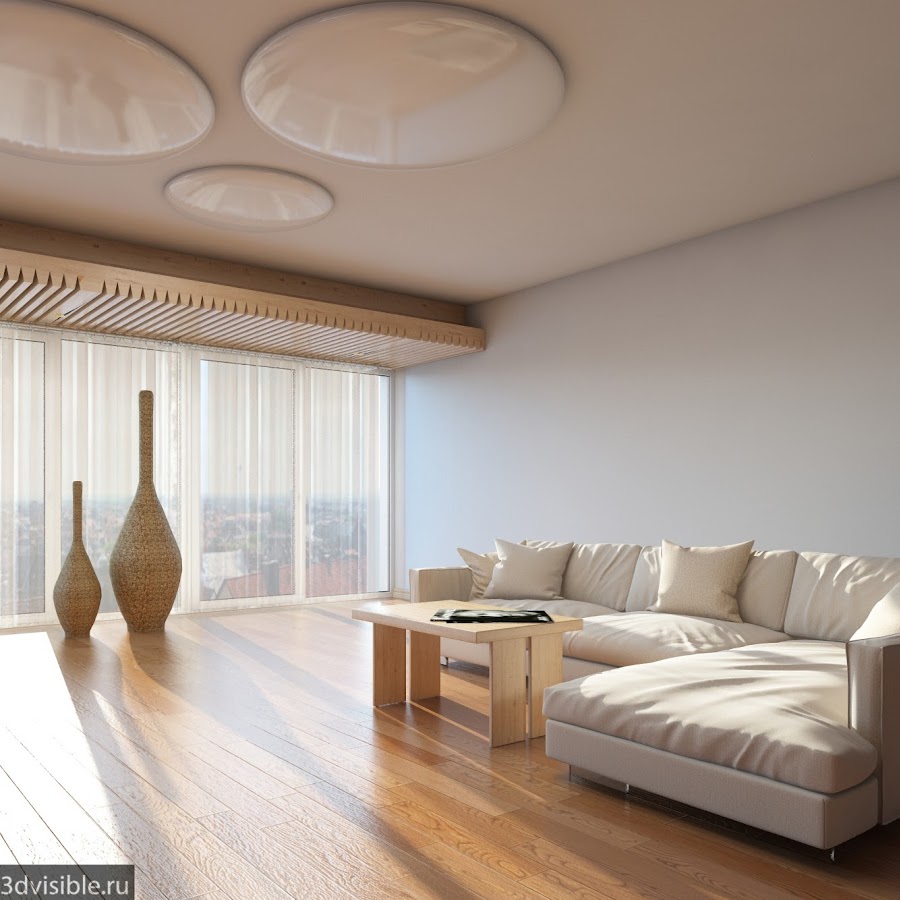 Вот один из примеров: визуализация дизайна интерьера, которую нам когда-то предоставил начинающий специалист.