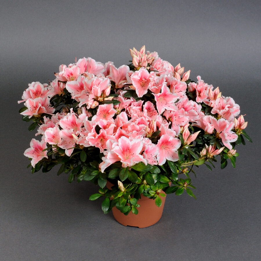 Японский вид азалий (рододендрон тупой) имеет очень обильное пышное цветение. Сформированная крона небольшого кустика (30-50 см) в период цветения буквально усыпана цветами, что обеспечило среди флористов высокую популярность сотен сортов этого вида. Основное отличие японской азалии от индийской – более мелкие цветы. Весной, когда минует опасность заморозков, горшки с японской азалией можно выносить в сад. Возможно выращивание некоторых сортов в открытом грунте в садах.