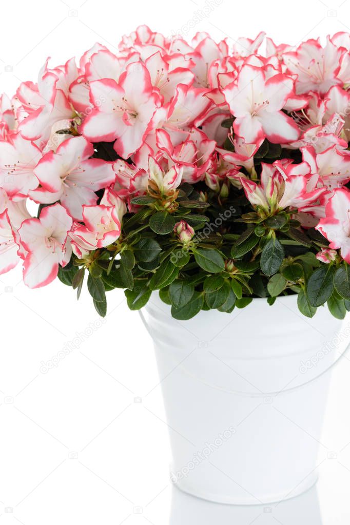 Цветение начинается в возрасте 3-4 лет одиночными цветами или соцветиями различных размеров и форм (простые, махровые, полумахровые, бахромчатые). В период цветения за роскошными соцветиями даже не видно листьев. Цветы азалии окрашены преимущественно в белую, розовую или красную цветовую гамму и всевозможные вариации их переходных оттенков. Это растение обладает противовоспалительным и бактерицидным действием, снимает сильное переутомление, проясняет мысли. Достаточно посидеть несколько минут рядом с благоухающим цветком, вдыхая его тонкий аромат и созерцая удивительную красоту буйного цветения, чтобы почувствовать благотворный эффект такой ароматерапии.