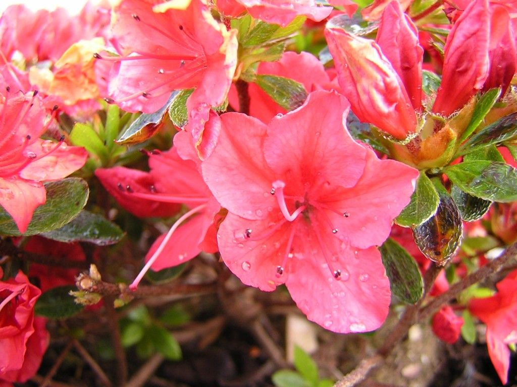 Поскольку вечнозеленые азалии держат листья круглый год, из них получаются отличные фоновые растения для сезонных цветочных клумб. И, конечно же, весной они устраивают собственное шоу с цветами от от белого, до розового, до красного, в зависимости от сорта.