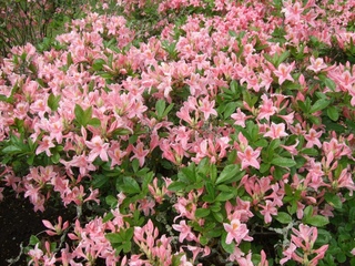 Еще одна листопадная азалия, произрастающая во Флориде ( R. canescens ), имеет ряд общих названий, включая розовую азалию пинкстерскую, пьемонтскую азалию и кустарниковую жимолость. Этот куст может вырасти от 6 до 15 футов высотой и производит ароматные, эффектные розовые цветы ранней весной, обычно, когда впервые появляются листья.