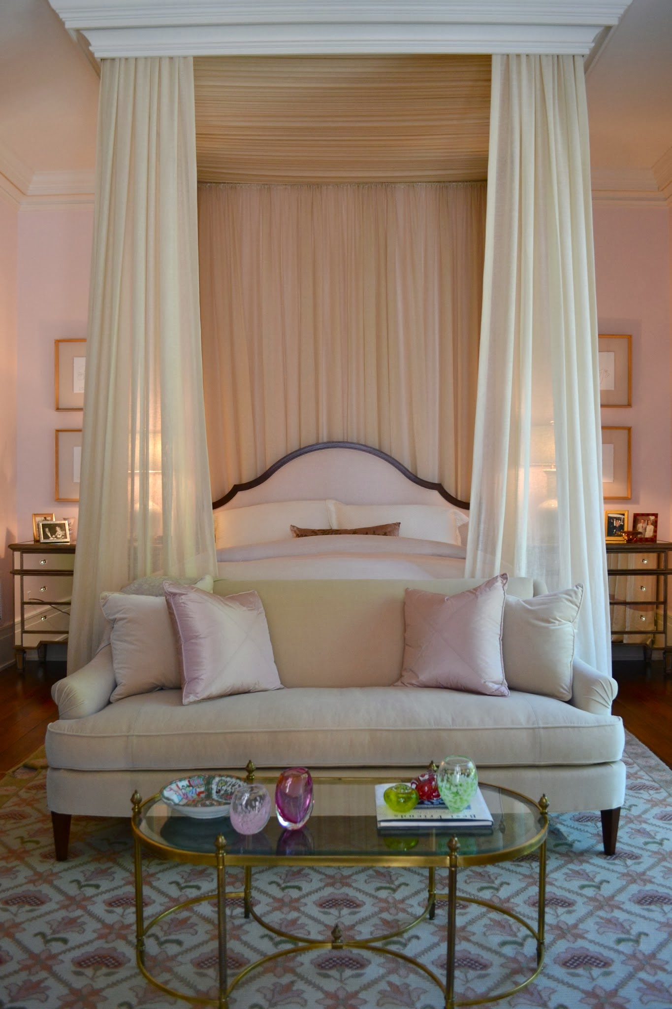 Островная спальня, в которой такой навес над кроватью выполняет функцию защиты от надоедливых насекомых