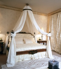 Сегодня балдахин – скорее декоративная, чем утилитарная деталь дизайна. Когда-то в средние века прочные драпировки защищали от холодных сквозняков, протекающих крыш и назойливых насекомых. Сейчас балдахин словно обозначает зону интимности, создавая атмосферу защищенности, уединенности, уюта и спокойствия, отсекая внешнюю суету.