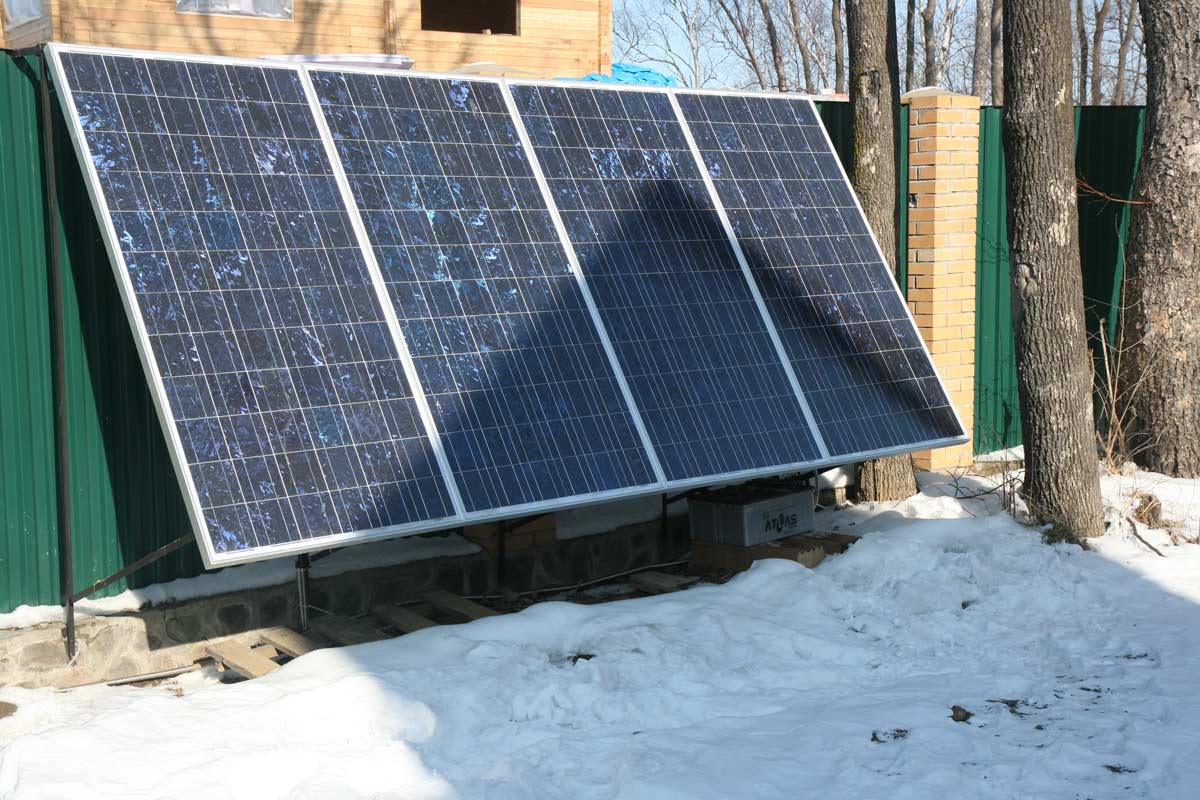 м. площади солнечных батарей можно снять в лучшем случае 1,2кВт. Этой мощности недостаточно даже для обеспечения электропитания одного ПК. Поэтому для генерации ощутимой мощности панели объединяются в станции. К примеру, с батареи площадью 10кв. метром можно получить уже более 1кВт/час энергии, чего достаточно для питания компьютера, телевизора и нескольких лампочек. Как правило, семью из 3-4 человек с месячным потреблением электроэнергии 250-300кВт обеспечат электроэнергии в теплое время года батареи с площадью 20кв.м. Зимой такие батареи неэффективны.