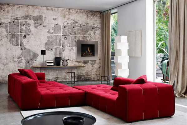 Вариант отделки гостиной бетонными стенамиИнтерьер с бетонными стенами, процесс создания модного покрытия