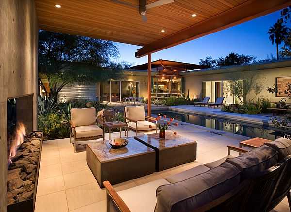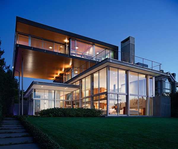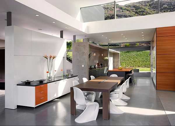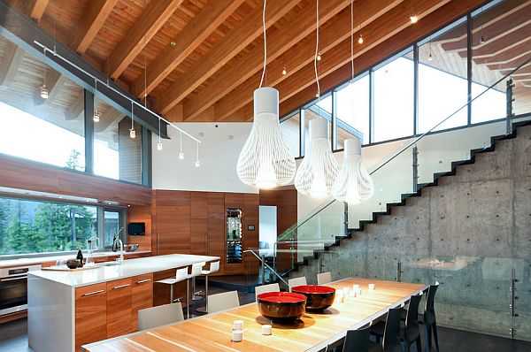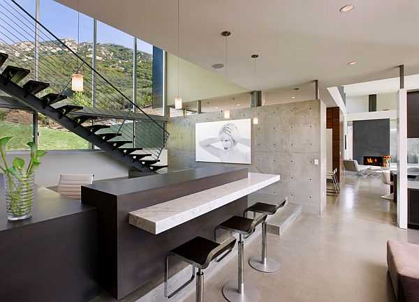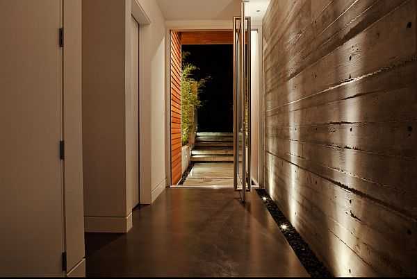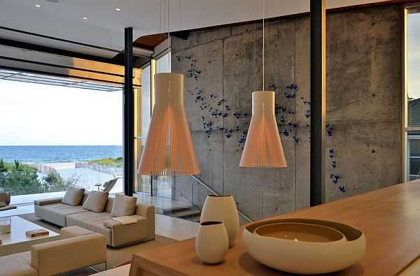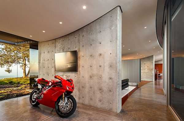 Первое, что бросается в глаза, красота дома снаружи. А затем привлечет внимание и дизайн интерьера, особенно сочетание бетонных стен и деревянных панелей.