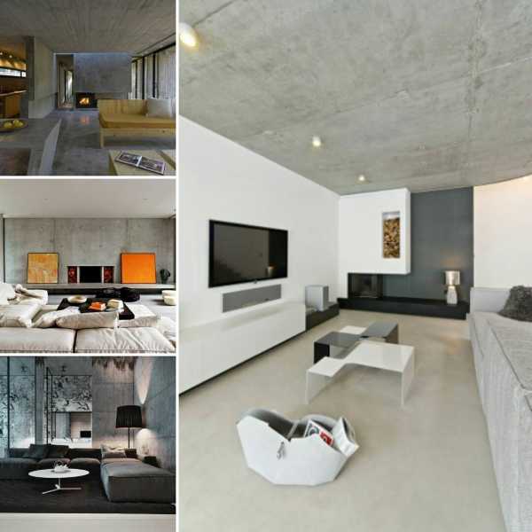 Бетон в интерьере гостиной, 40 стильных фото. Красивые интерьеры и дизайн