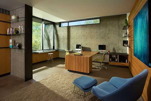 Как видите, даже при обилии бетонных стен дом продолжает выглядеть очень теплым, светлым и пригодным для проживания.