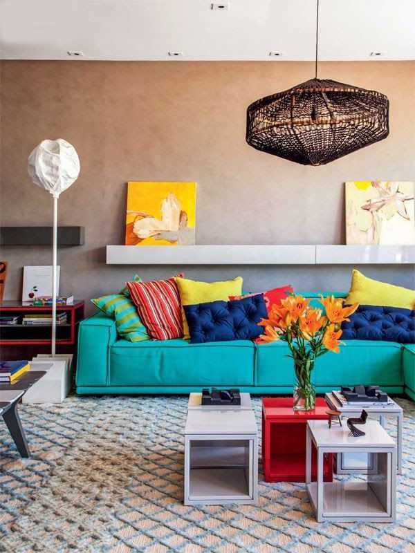 Добавляем яркие краски при помощи картинок на стене и подушек