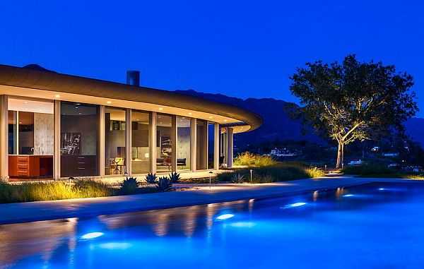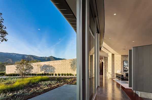 Это нестандартный дом с криволинейными формами и необычными бетонными стенами.