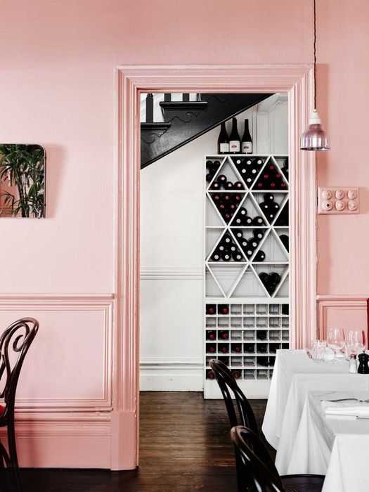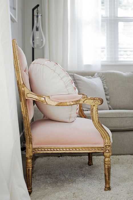 Наиболее лаконично он смотрится в виде дополнительного, а не основного цвета. Например, повесить в гостиной шторы этого приятного оттенка, покрасить в кухне несколько фасадов краской такого цвета, поставить в спальне кресло с розовой обивкой.