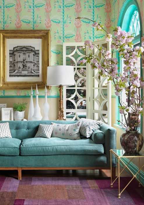 - все оттенки фисташкового и голубого, творящие нежность в комнате;