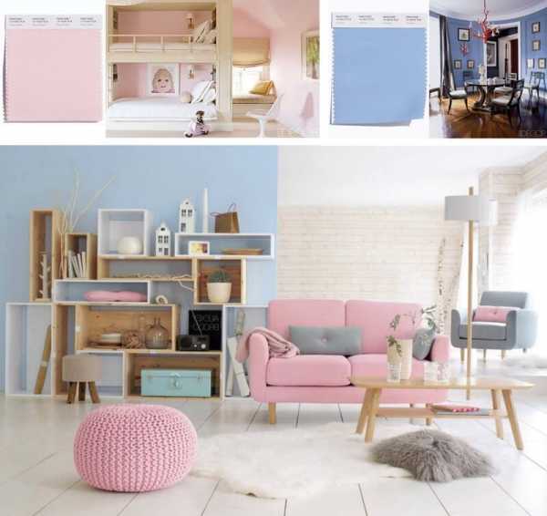 Единство кварцевого и небесно-голубого создает потрясающе сбалансированный эффект. Розовый, как теплый оттенок, обладает эффектом обволакивания пространства, а холодный голубой успокаивает его.