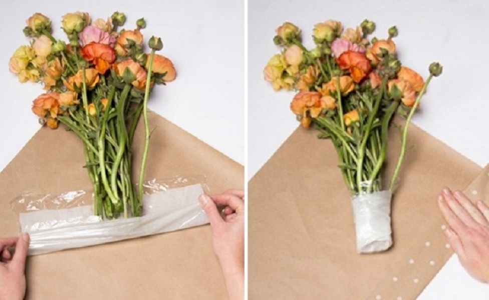 - От красивой упаковки Вам придется отказаться, чтобы сохранить жизнь изящным растениям. На нижней части стебля необходимо удалить ветки и листья, чтобы не допустить гниения и помутнения воды в вазе.