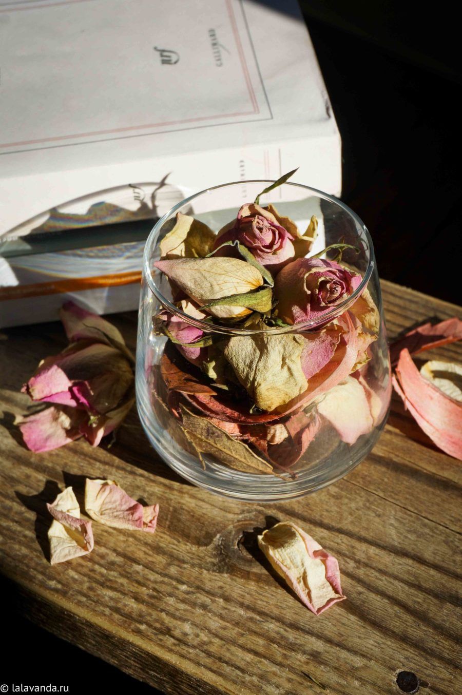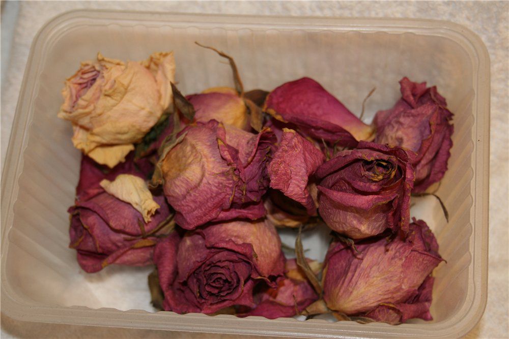 Вот еще один нехитрый совет, как использовать лепестки, в данном случае, наиболее подходящими являются лепестки роз. Хорошо, если розы только начали увядать и лепестки ещё в хорошем состоянии.