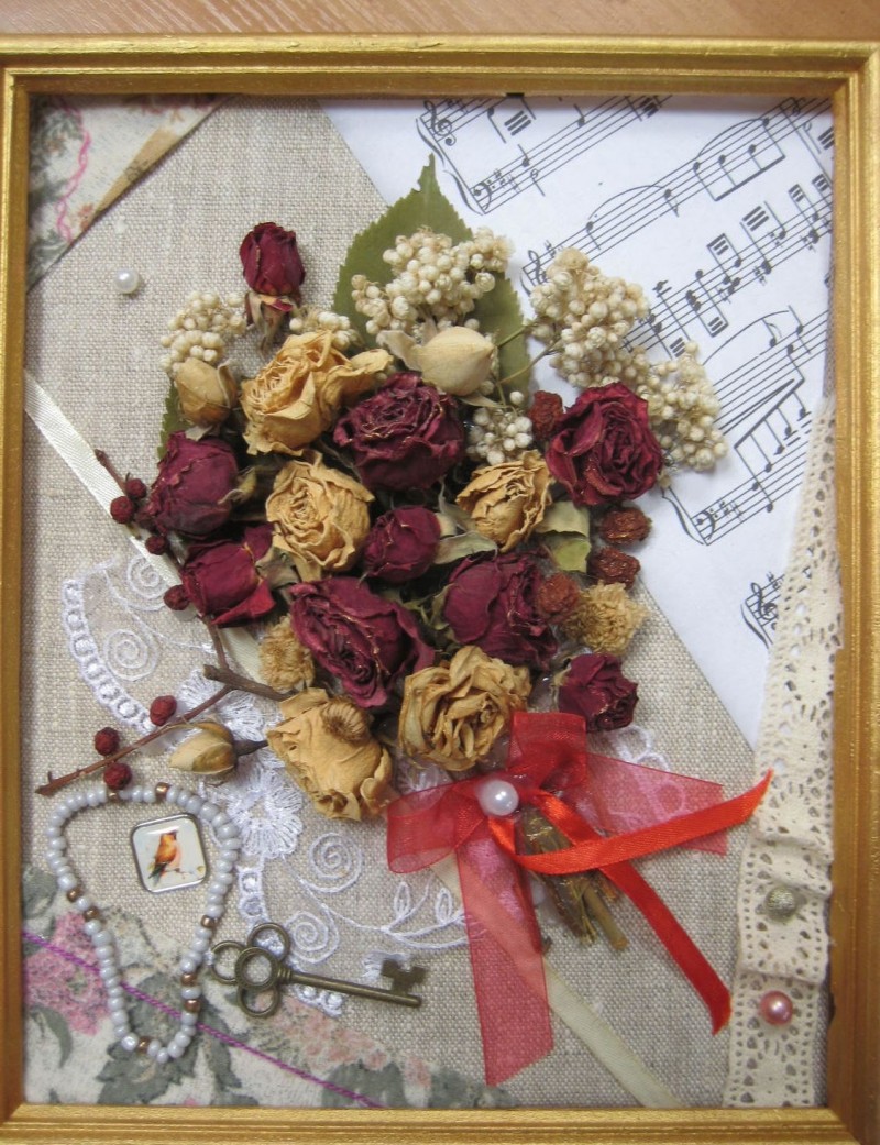 Засохший цветок розы, находящийся между страницами любовного романа, всегда считался сентиментальной деталью прошлых веков. Но ведь красота не умирает, а только сморщивается, становится блеклой, оставляя чуть заметный аромат былого счастья. Из таких цветов можно было составлять зимние букеты. Существует и сейчас много идей, как дать розе второй шанс радовать людей.