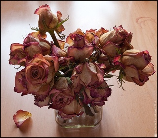 Понятное дело, что если молодой человек подарит на 8 марта любимой букет засушенных роз – это будет смотреться странно… Наверное, все-таки лучше живые… А вот если потом уловить момент, когда живые розы начали увядать и вовремя их засушить… и сделать это правильно.. ммм.. я думаю, такой букет будет радовать долго:)