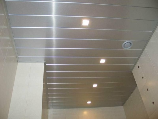 Реечная отделка потолка основана на базе тонких пластин из стали или алюминия, которые, в свою очередь, покрыты защитным слоем лака. Такой потолок имеет различные расцветки и хорошо подходит для помещений, имеющих небольшую площадь.