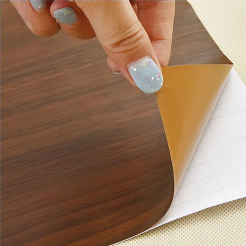 При использовании самоклеящейся пленки достаточно снять с изнанки защитную бумагу и приложить покрытие к основанию, притереть тряпкой, пластиковым шпателем или прокатать резиновым валиком для удаления пузырьков воздуха.