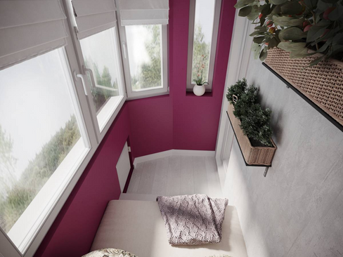 С помощью разных технологий нанесения рисунка их изготавливают разноцветными, с имитацией камня, дерева, узорами. На маленьком темном балконе визуально расширить пространство помогут теплые светлые оттенки.