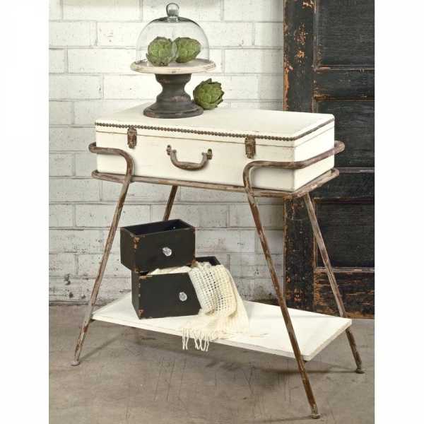 Старинные чемоданчики, как правило, изготовлены из фанеры, поэтому прикрутить к ним ножки не составит труда. Новую мебель можно дополнить практичной столешницей, окрасить или оставить как есть. Если корпус очень хорошо сохранился, его рекомендуется состарить.