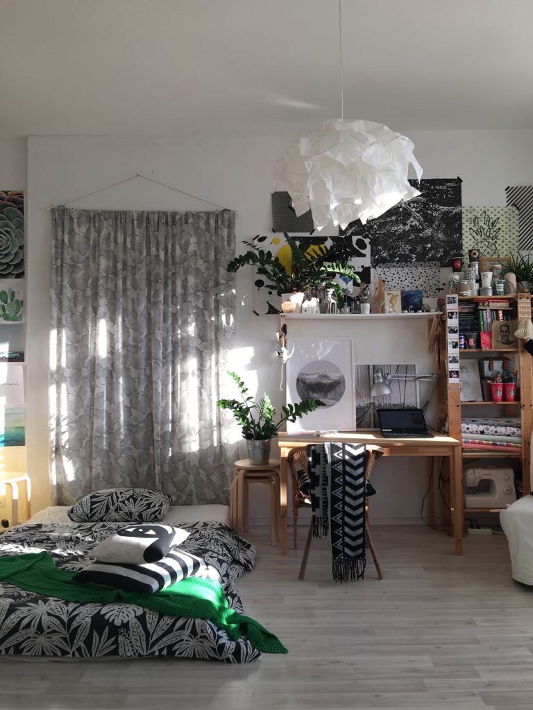Мне важно спать на нашем матрасе. Мы с парнем купили его пополам с хозяйкой первой квартиры и выкупили, когда съезжали. На нашей нынешней квартире было два раскладных дивана: один вывезли, а второй мы оставили на кухне для друзей. Я считаю, что чем меньше вещей в квартире, тем лучше: мы переезжали со своими шторами, посудой, растениями, сушкой для белья, чайником, шторкой для ванны и даже стульями.