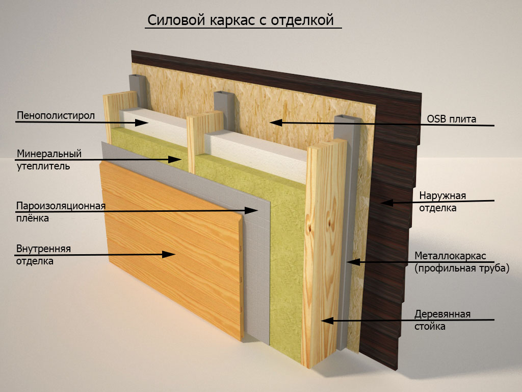 Если вы хотите одновременно утеплить стены гаража, поместите изоляционную пену внутрь каркаса. После того, как утеплитель установлен, можно приступить к установке плиты OSB поверх каркаса и утеплителя.Перед установкой плиты OSB всегда рекомендуется сделать изоляцию.