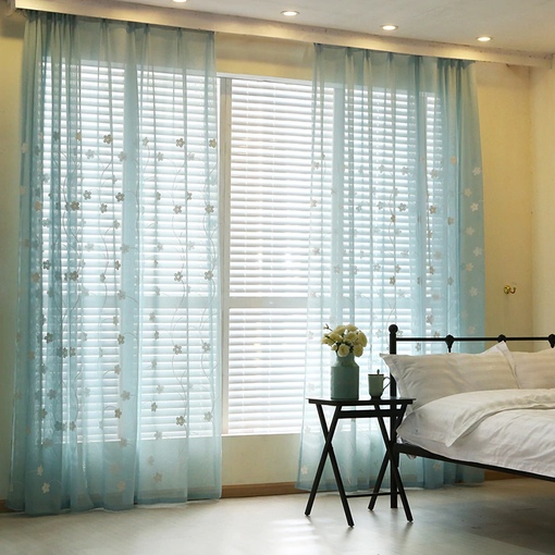 Имеет блестящую или матовую поверхность. Отлично пропускает свет, практически не задерживая его. Она может быть как однотонной, так и с рисунком. Орнамент во втором случае наносится путем фотопечати или травлением. Также он может быть вышит. Кроме того, интересно смотрятся образцы ткани, на которых рисунок вырезан при помощи лазера. - Вуаль – это более плотная ткань, которая рассеивает солнечный свет. При этом она намного мягче предыдущего образца. Вуаль имеет только матовую поверхность. Она может быть изготовлена из шелка, хлопка, быть смесовой или полностью синтетической. Вуаль бывает однотонная, с гипюровыми вставками, с различными рисунками или имеет золотое напыление.