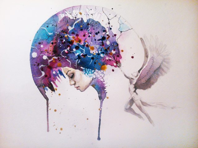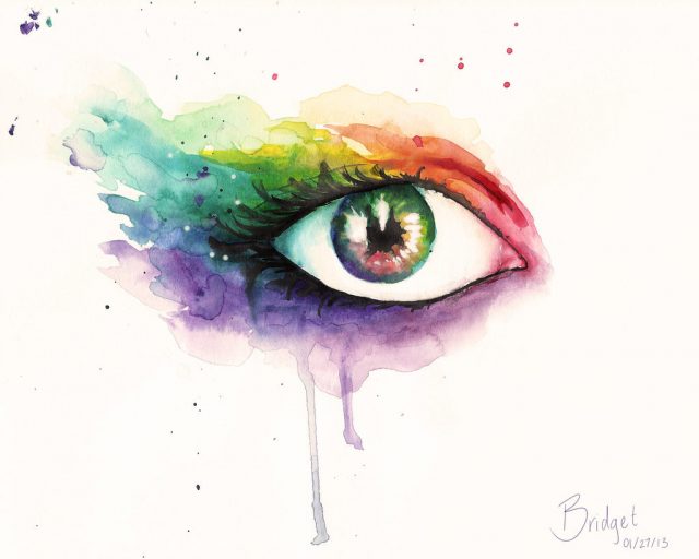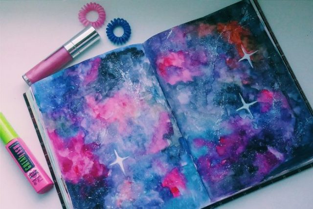 Для эффектных рисунков необходимо равномерно распределить влагу по поверхности бумаги – это обеспечит атласный вид. Начинайте с фона. Такая техника рисования позволяет добиться гипнотизирующего эффекта.