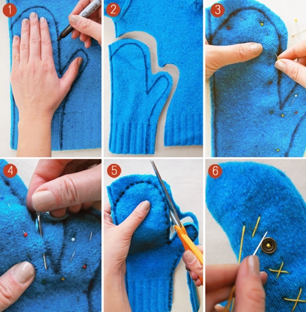 Старую одежду можно раскроить на небольшие квадраты или любую другую форму и сшить из них удобные прихватки для горячего на кухню. Можно выполнить их также в форме руковиц. Если материал поделки слишком тонкий, сложите его в несколько раз либо используйте подклад из более плотной ткани, чтобы не обжечься.