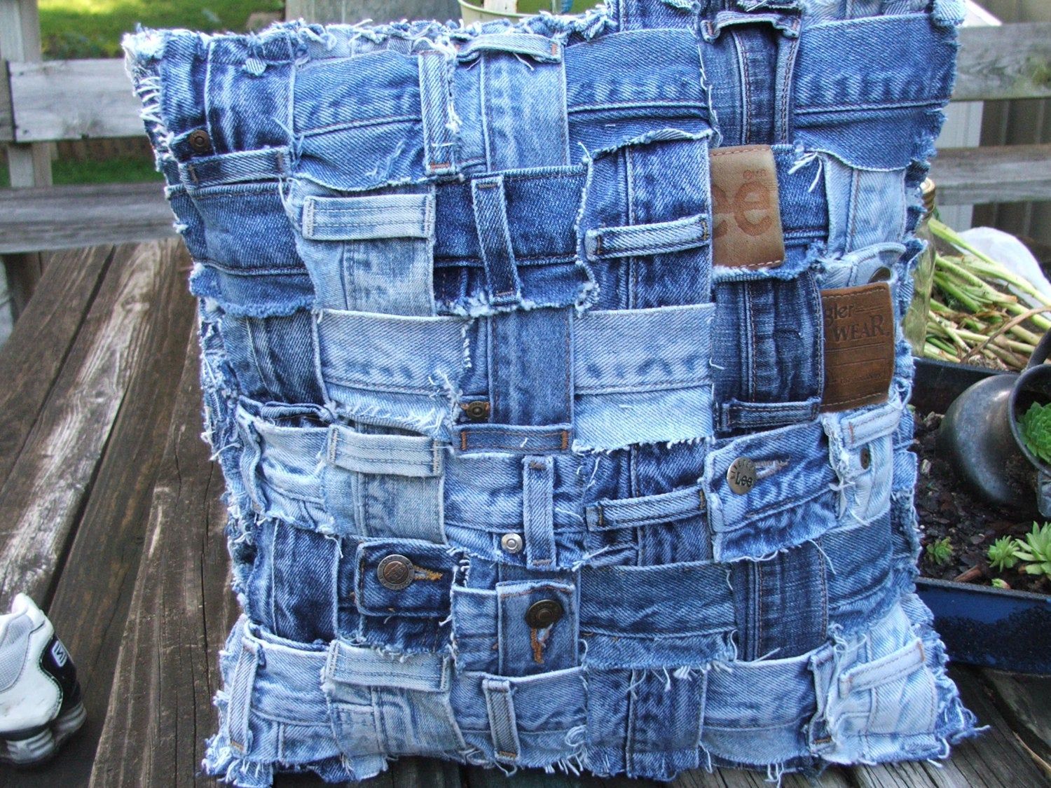 Эти старые изношенные джинсы с поврежденными застежками-молниями или странными слезами получили совершенно новую функцию с этой единственной в своем роде пляжной подушкой, которая оживает, позволяя вашей швейной машине проявить творческий подход к полоскам и кускам этих джинсов.