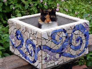 Вы можете купить старые горшки с растениями на распродаже автомобильных багажников, или они довольно дешевы, чтобы купить новые. Плитка лучше приклеится к посуде, терракотовым или глиняным горшкам, чем к пластику.