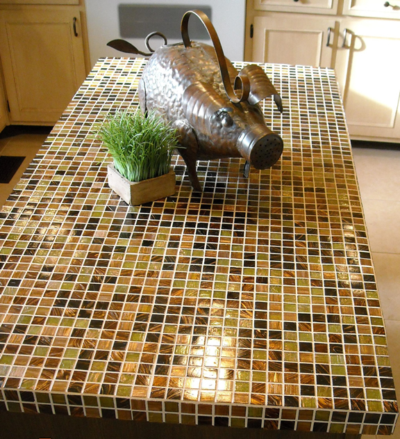 Если ваш кухонный стол уже достаточно потрепан, покрыт царапинами и сколами, обновите его посредством имеющегося кафеля. Таким образом вы значительно продлите срок эксплуатации стола, и также сделаете его настоящим произведением искусства.