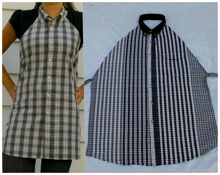Переделка мужской рубашки в оригинальный кухонный фартук займет максимум один вечер. Зато в таком стильном аксессуаре будете выглядеть сногсшибательно даже на кухне. Держите еще несколько моделей для вдохновения!