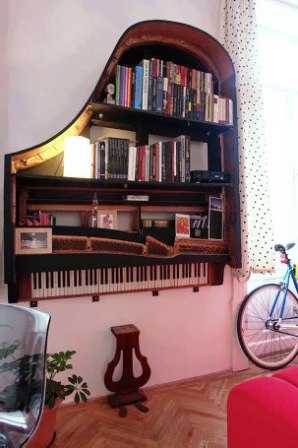 Конечно, не у каждого найдется старое фортепиано, но если все же ваше фортепиано не исправно и не поддается исправлению, то можете сделать из него прекрасную полочку для книг!