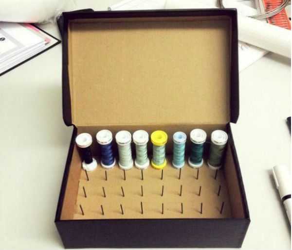 Каждая хозяйка знает, что нитки и прочую фурнитуру удобно размещать в специально приспособленных уголках. Чтобы сделать таковой, вам понадобится гладильная доска, которой уже несколько лет не можете найти применение.