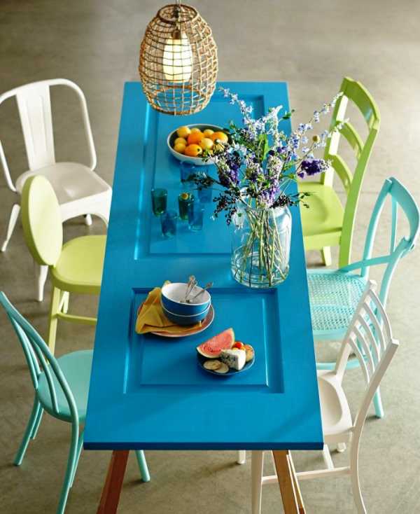 Еще одна оригинальная поделка из старых деверей – кухонных стол. Достаточно прикрепить к ним ножки.