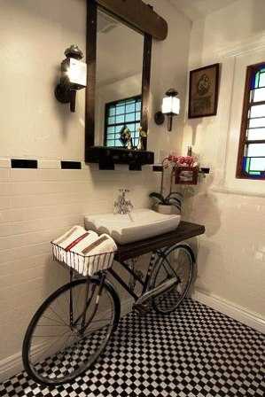 Такая креативная идея не каждому придется по душе, но мы уверены, что найдутся смельчаки, которые сделают раковину на велосипеде и установят ее в ванной комнате.
