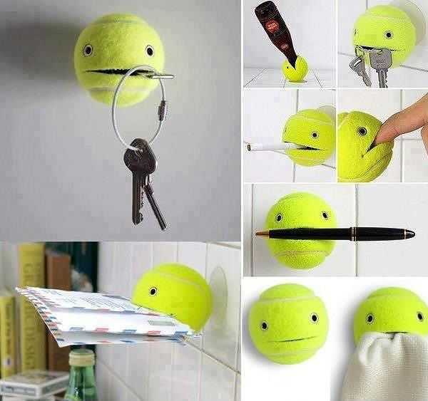 Находкой для баскетбольных фанатов и спортсменов станет сумка из старого мяча. Начать стоит из разреза в мяче. Затем, используя пластичный клей для резины, вклеить застежку-молнию, зафиксировать ее зажимами и оставить на сутки. После полного высыхания вставить в мяч кольца для карабина, чтобы повесить ремешок на плечо. Логотипы и остатки клея убрать мелкой наждачной бумагой.
