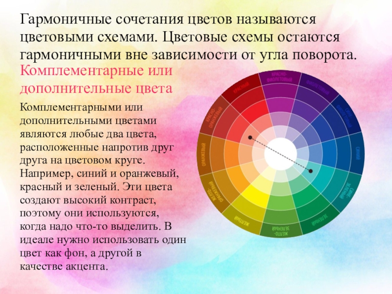 цвета образуют цветовой круг. Так вот, используя цвета из данного цветового