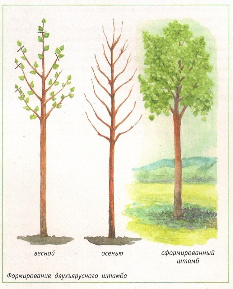 где в период вегетации много пасмурных дней, штамб формируют более высоким. Это ставит