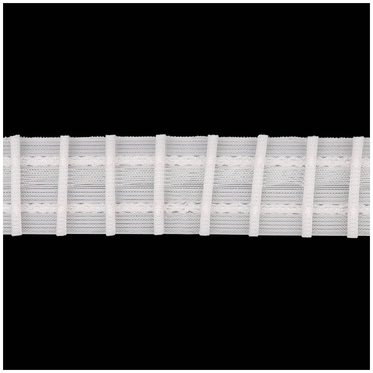 Заголовок Buckram представляет собой полосу из полупрозрачного или белого элемента жесткости, который используется для создания более четкой формы на верхней части занавеса.