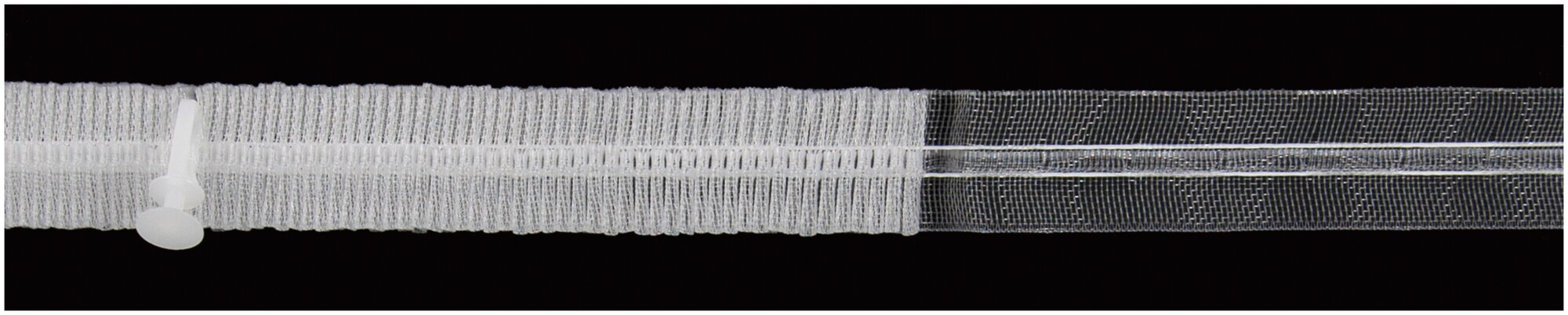 По плотности материала выделяют: прозрачную ленту для легких тканей (органза, тюль, вуаль, сетка), непрозрачную для более тяжелых материалов.