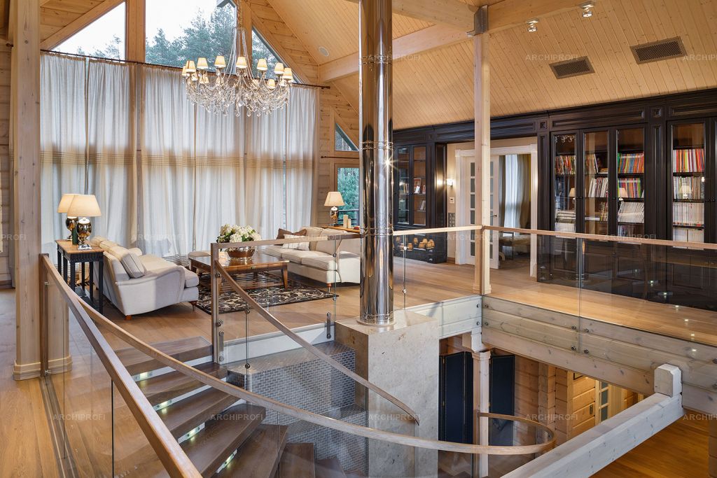 Второй свет предполагает отсутствие потолочных перекрытий на одном или нескольких этажах, что приводит к увеличению высоты окон и, соответственно, света в интерьере. Такая архитектурная особенность в интерьере загородного дома помогает создать наполненные воздухом помещения, подчеркнуть масштаб строения, добавить ощущение праздничности и парадности