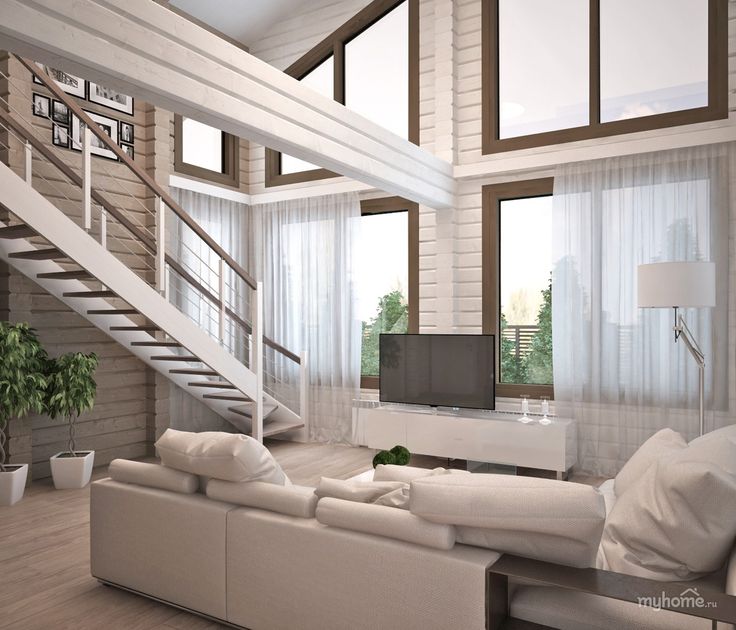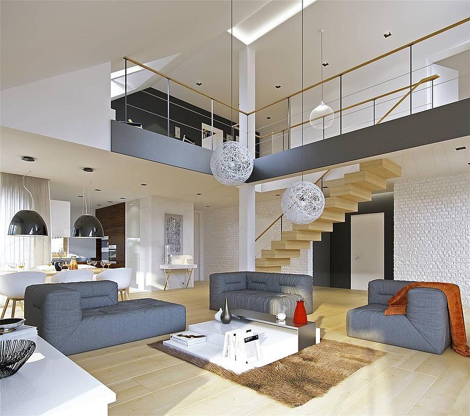 - Отсутствие потолочного перекрытия и высокие гладкие стены создают эффект колодца – акустика будет отличная не только внизу, но и на втором этаже. Имейте это в виду, если у вас большая семья и дети.