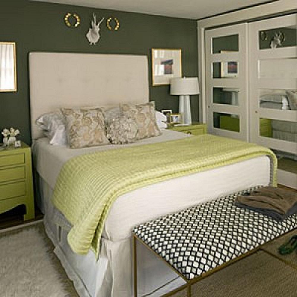 Хотя это не самый популярный оттенок для спальни, зеленый может быть расслабляющим и успокаивающим, особенно его серо-зеленая вариация.