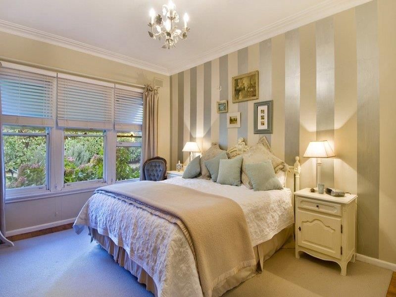 И в завершение нашего путешествия по цветам спальни мы представляем вам совершенно новый мир вариантов: обои. Эта спальня — не просто жилое пространство, это произведение искусства. Наш взгляд сразу же привлекают гипнотизирующие черные окрашенные полосы, которые прослеживают архитектурную ДНК самого дома, красиво модернизируя кости викторианского дома, украшенного Мартином Лоуренсом Буллардом. Угрюмая, пышная декоративная подушка и крайнее одеяло добавляют всплеск цвета, и это действительно все, что вам нужно в таком пространстве.