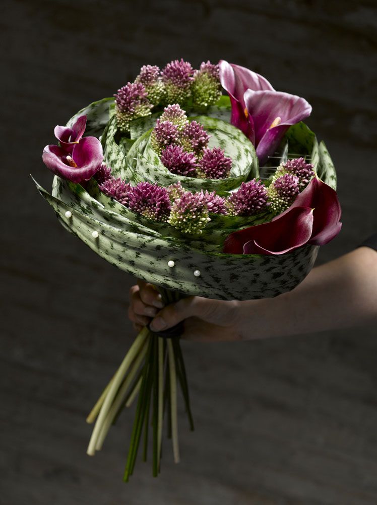 Иногда в цветочные композиции просто необходимо добавить сочной зелени. Искусные флористы не используют листья распространенных растений. Они предпочитают деформировать экзотичные сорта. Сложенные листья азиатского ландыша или плетение из жесткой травы в форме сердца преобразят обычный букет.