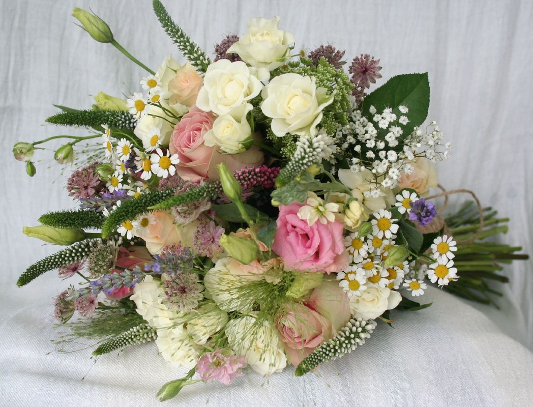В нашей стране для букетов подойдут любые цветы. Но лучше не включать в композицию дикорастущие или малоизвестные сорта – среди них могут оказаться редкие экземпляры, помимо этого полевые цветы и растения быстро вянут. Растения, выращенные с оборудованных теплицах, более стойкие. Особенно выносливы хризантемы и герберы. Если их пометить в гидратированную пену, о которой мы писали выше, букет сохранит свежесть более двух недель.